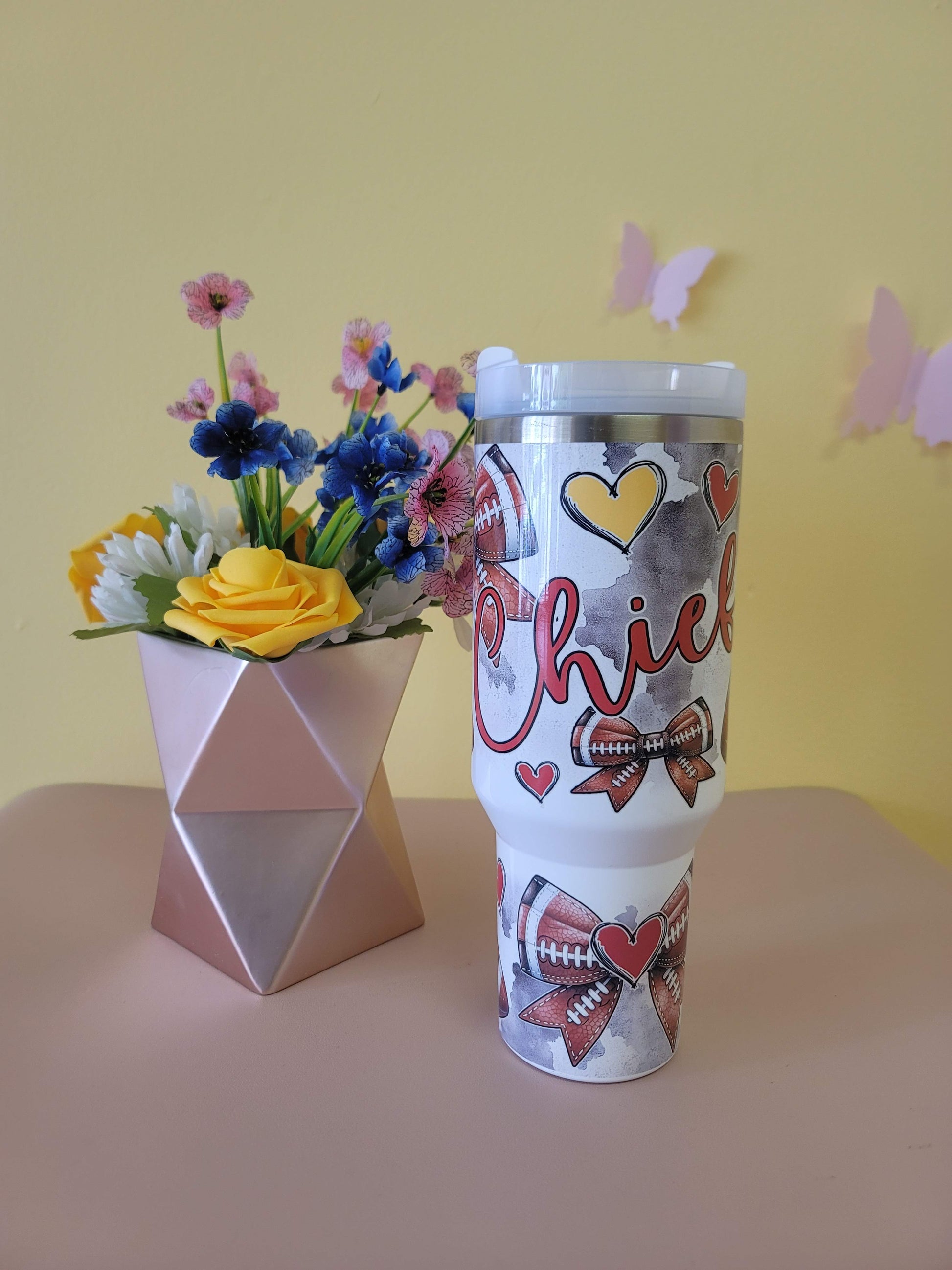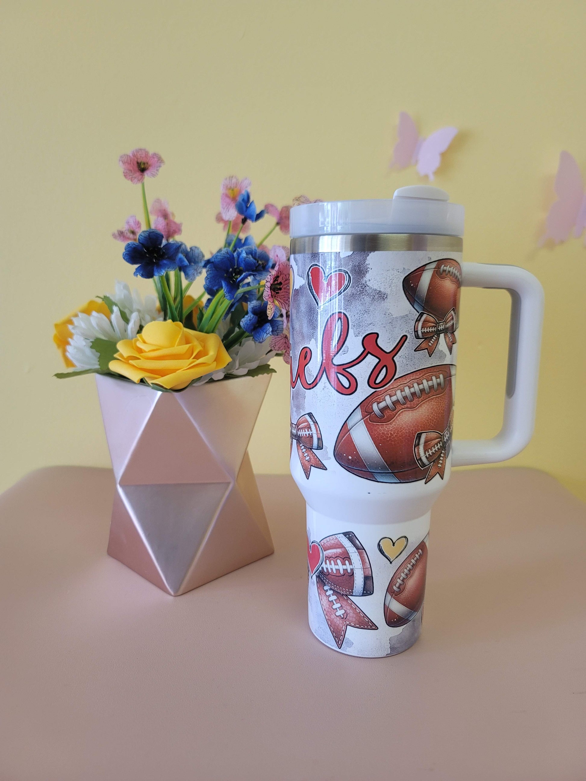 Represent your team on the go with our 40 Ounce Stainless Steel Tumbler featuring the Kansas City Chiefs logo. Perfect for all football fans, this tumbler keeps your drink cold/hot for hours. Who needs a boring cup when you can rep your team?! Go Chiefs!