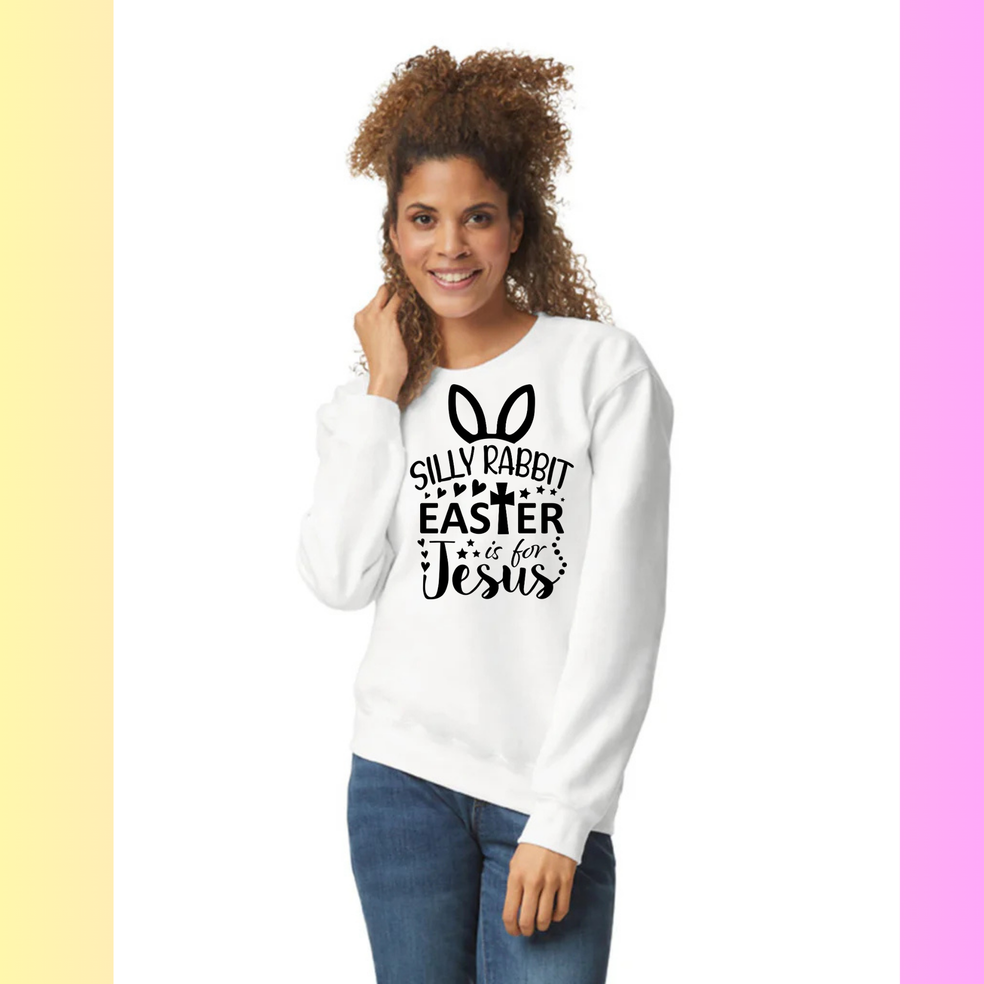Women's Long Sleeve Sweatshirt - Relaxed Fit Crew Neck | Devotional Easter Silly Rabbit Easter is for Jesus