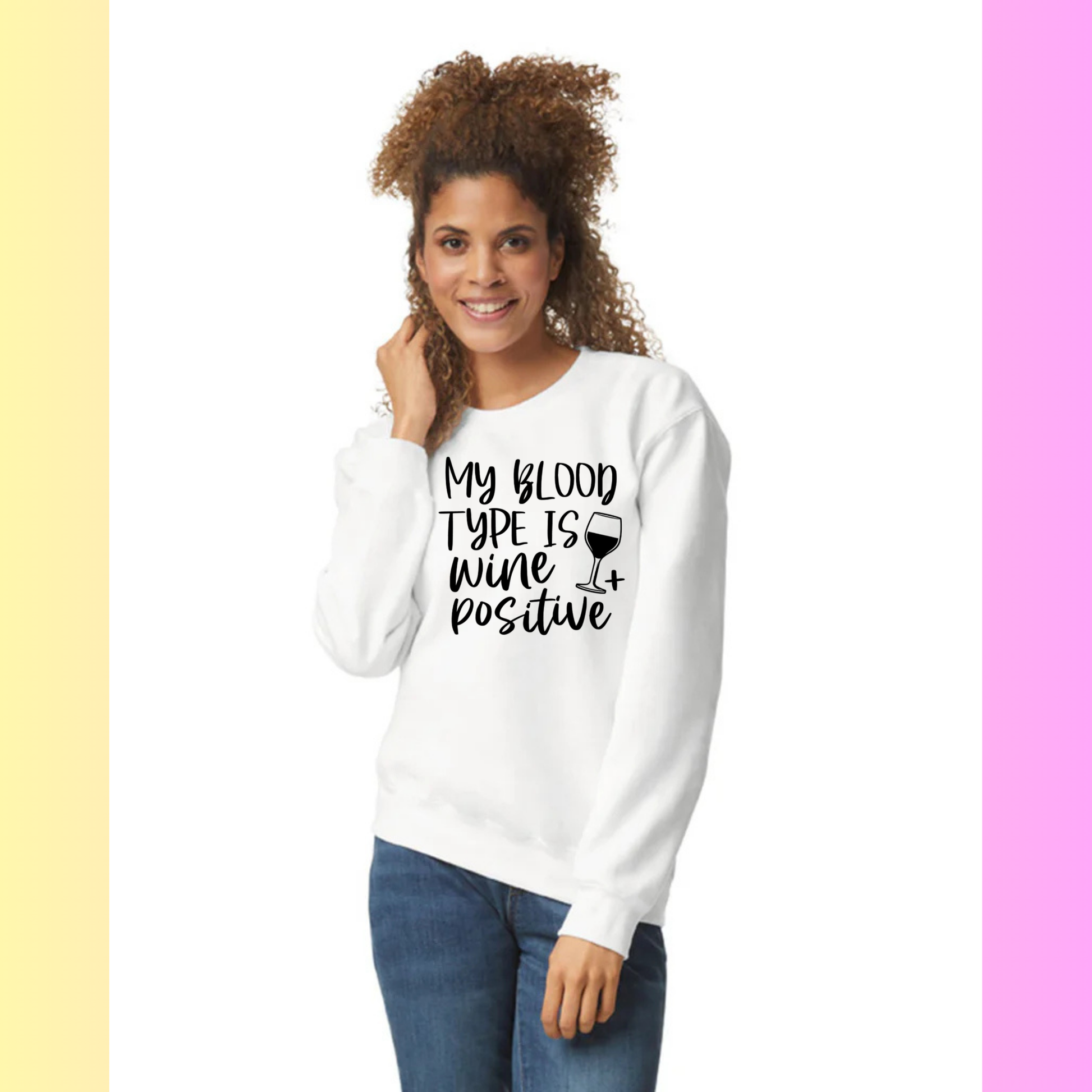 Women's Long Sleeve Sweatshirt - Relaxed Fit Crew Neck | My Blood Type is Wine Positive