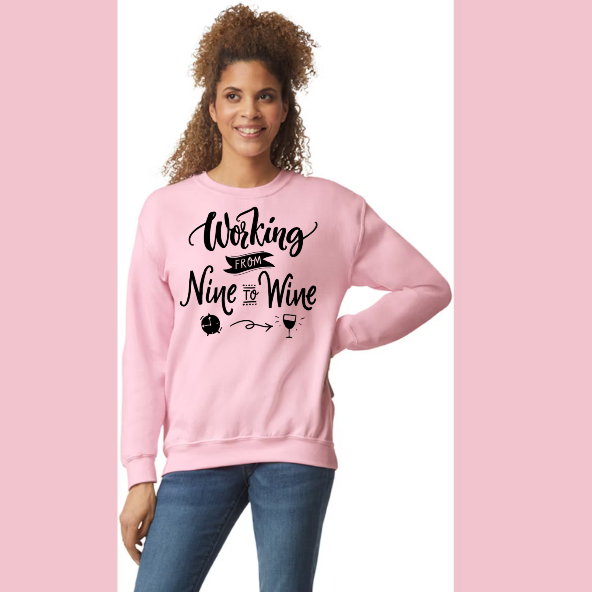 Women's Long Sleeve Sweatshirt - Relaxed Fit Crew Neck | Working Nine to Wine